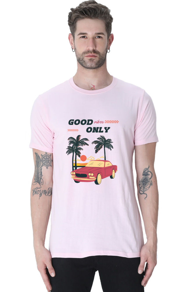 Embrace positivity with our "Good Vibes Only" t-shirt. This comfortable round neck, half sleeve t-shirt is perfect for casual outings or a laid-back day. Made from high-quality fabric, it ensures both style and comfort. Spread the good vibes wherever you go with this must-have addition to your wardrobe. Available now on Cotysh.